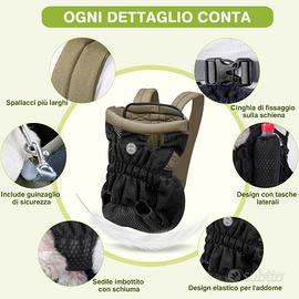 Doppio modo di indossarlo: Davanti o dietro – porta sempre il tuo cane vicino a te. Riduce l’ansia e rafforza il legame. Gli spallacci larghi garantiscono stabilità e comodità.