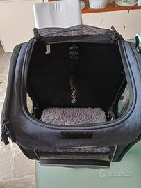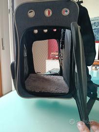 Vendo zaino per gatti/cani aperto per vedere se andava bene come misure ma era la misura più piccola e quindi non andava bene. Non mi è stato possibile effettuare il reso. Ottimo zaino materiale buono traspirante si può aprire il sopra in modo che il pelosetto metta il suo musetto fuori mentre camminiamo. Ha un gancio di sicurezza all' interno per allacciare il collare, si può aprire lateralmente da entrambi le parti e ripiegare comodamente quando non lo si adopera come si vede dalle foto. Si può lavare a mano. Le misure sono L32xp26xh38 Consegna a mano di persona
