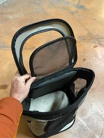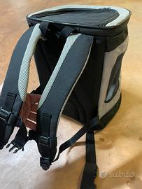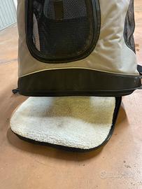Eccezzionale zaino per portare con te il tuo amico a 4 zampe, in escursione o addirittura in moto, io ho portato con lo scooter il mio cocker spaniel! In ottime condizioni! Prese d’aria, cerniere anche con possibilità di far uscire sola la testa. Fondo soffice e sfoderabile!