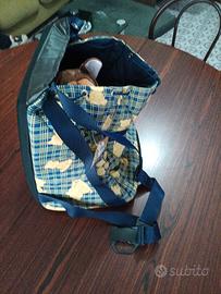 vendo zaino trasportino per piccoli animali, nuovo , mai usato, dimensioni: lunghezza cm 32, altezza cm 32, profondità cm 21.