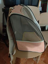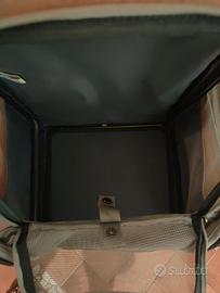 zaino trasportino per cani e gatti fino a 10kg. praticamente nuovo, usato solo una volta per una gita in montagna (comodissimo e funzionale). vendo perché il mio cucciolo ormai ha superato il peso max. Misure: altezza 40, larghezza 34, profondità 28.