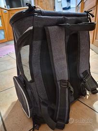 zaino trasportino comodissimo e usato pochissime volte .unici segni di utilizzo su tappetino interno che si può rimuovere . trasporto di cani e gatti fino ai 10 kg ( il mio bassotto ci stava benissimo)