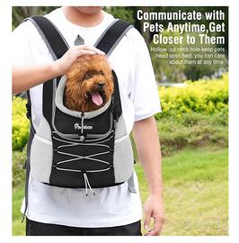 Zaino Traspirante Regolabile per Cane e Cuccioli, Guinzaglio di Sicurezza, Trasportino da Viaggio Cani , Marsupio per Cani di Piccola Taglia e Gatti,S, Nero