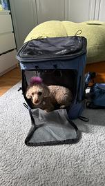 Perfetto per fare le passeggiate. Molto comodo per chi lo porta. Modello Daypack, taglia M. Per animali fino a 12kg. Ha due tasche esterne, una interna e in più due spazi sopra per caricare le proprie cose. Prezzo nuovo €230. Vendo, perchè mi è arrivato il modello sbagliato. Mai usato. Più dettagli sullo zaino si puo trovare sul sito web ufficiale tedesco di wanderpfote.