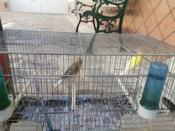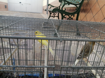 Vendo 1 coppia di canarini 2024 femmina portatrice occhi rossi. Senza gabbia.