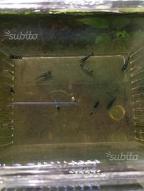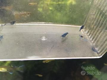 Disponibili solo 10 gamberetti di varietà neocaridine davidi blue carbon rili come da foto reale appena scattate, caridine allevate nei miei acquari con acqua di rubinitto e abituate a convivere con guppy ed endler.