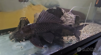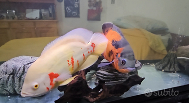 300 litri senza piante, con 2 pesci Oscar (astronotus ocellatus) molto grandi e 2 plecostomus molto grandi.