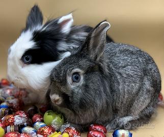 Questi due coniglietti nano formano già una coppia affiatata: adottandoli insieme eviterai la fase di inserimento. Sono perfetti per un regalo di Santa Lucia / Natale.