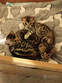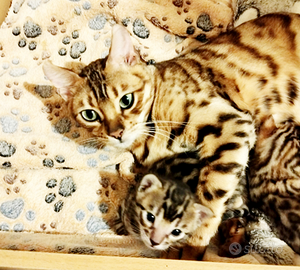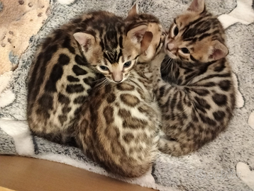 Cucciole razza Bengala nate il 29.12 cresciuti in casa e ben socializzati. Vengono ceduti con pedegree Afsi anche for breading, microchippati, doppia sverminazione, doppia vaccinazione, nutriti con cibo di eccellente qualità, sanissimi. Genitori entrambi di mia proprietà e visibili. Assistenza e consulenza post vendita. kit cucciolo compreso . ?1200