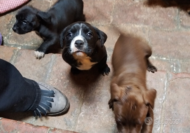Cuccioli molto affettuosi e svegli, ultimi due disponibili, neri con musetto bianco e di taglia media, vorremmo che possano vivere anche all'aperto, così come sono nati e cresciuti fin qui