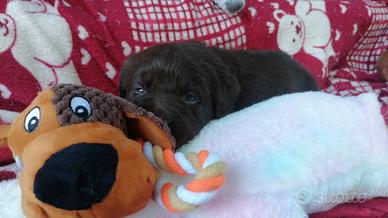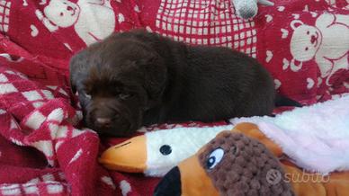 Cuccioli di labrador retrievers colore chocolate disponibili presso allevamento con affisso ENCI ed FCI. Genitori testati per le patologie di razza e certificati esenti displasia anche e gomiti. I cuccioli verranno consegnati con microchip, iscrizione anagrafe canina, 3 cicli di vermifugo, trattamento antiparassitario nexgard spectra, vaccino, puppy kit, pedigree e pdf con indicazione sulla crescita ed inserimento del cucciolo in famiglia.
