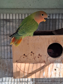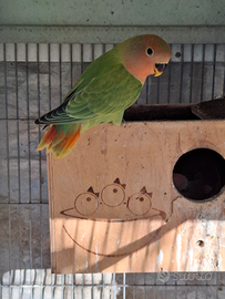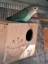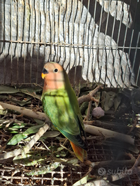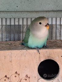 2 pappagalli inseparabili. Maschio acquaturquise femmina verde faccia rossa opalina nati da coppia sessolegata hanno 2 mesi abituati a vivere al esterno