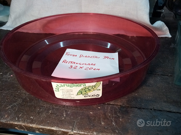 2 vaschette una rotonda di 34cm e una rettangolare di 32cm x 20cm. La rettangolare ha un bordino rotto vedi foto. Ritiro in loco vige la regola visto e piaciuto. NON SPEDISCO