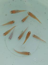 Vendo trio di giovani medaka blu miuki (1 maschio e 2 femmine) di 3 cm(4 mesi) insieme a 10 euro.