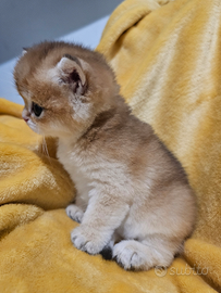 Cedesi nel nostro allevamento 4 cuccioli di british shorthair nella colorazione black golden shell ny12 colore molto raro e molto bello. Nati il 03.11.25 pronti a 3 mesi. Sono 3 maschi e una femmina. Femmina (prenotata) Genitori esente di fiv felv e pkd. Vengono ceduti cosi: Libretto sanitario 2 vaccini trivalenti Genitori esente di fiv felv e pkd (AIDS gatto,leucemia gatto e reni policistico)quindi lo sono anche I cuccioli Test feci x vermi negativo +la giardia tutto negativo Controllo dello stato di salute generale Pedigree Contratto di cessione Kit cucciolo Antiparassitario Disponibili come da compagnia o da riproduzione!! Tutti nostri cuccioli hanno un ottimo carattere. Molto affettuosi, giocherelloni, curiosi, coccoloni e tranquilli. Sono cresciuti con noi e nostri bimbi di 6 e 10 anni. X quello sono molto affettuosi. Siamo un allevamento registrato, tutti nostri cuccioli hanno un pedigree italiano Disponibile trasporto in tutta Italia Più foto e video anche tramite WhatsApp