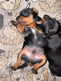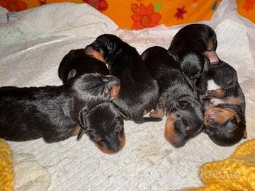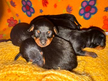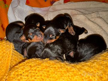 Disponibili per la prenotazione o il ritiro 5 bellissimi cuccioli di Pinscher (tutti maschi), nati e cresciuti in ambiente familiare con tantissimo amore. I piccoli hanno un carattere vivace, socievole e sono già molto attenti a ciò che li circonda, tipico della razza. Sono i compagni ideali per chi cerca un cane piccolo nel formato ma grande nel temperamento! Salute e Profilassi: I cuccioli verranno consegnati con: o Ciclo di sverminazione completo. o Primo vaccino effettuato. o Libretto sanitario timbrato dal veterinario. o Svezzamento già concluso con cibo di alta qualità. I genitori sono visibili e godono di ottima salute. Cerchiamo per loro famiglie responsabili e amanti degli animali che possano dare loro tutto l'affetto che meritano. Per ulteriori foto, video o per venire a conoscerli dal vivo, contattatemi via chat. No perditempo, solo veri interessati.