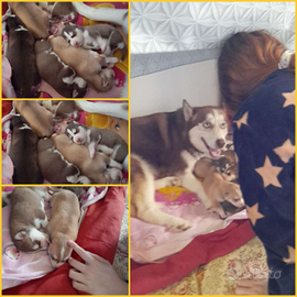 8 cuccioli di razza Siberian Husky. Sono disponibili 4 maschi e 4 femmine. Cuccioli possono essere portati a casa dopo di 01.12.2025. Avranno libretto, svermiciata,visita di controllo(2 volte),vaccino base junior,trattamento junior contro pulci e zecche. Nutriti dopo periodi di lattamento con crocchette junior scelti dal veterinario. Cania esemplare molto sano, vaccini obbligatorio, contro pipi di ratti, contro l'eschimaniosi,svermiciata,trattamento contro pulci ect. non ha nessun problema con diarea. Nutrita con cibo naturale e sano