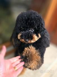 Barboncino 5 kili colorazione phantom pedegree enci 11 mesi non ancora misurato alto piu o meno 29 cm genitori testati clear carattere meraviglioso denti in occlusione perfetta ricerca fidanzatina per accoppiamento