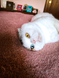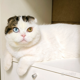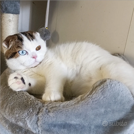 Disponibile per accoppiamento maschio scottish fold dalla particolarissima colorazione e dagli occhi impari. Testato per fiv felv e pkd. Pedigree enfi
