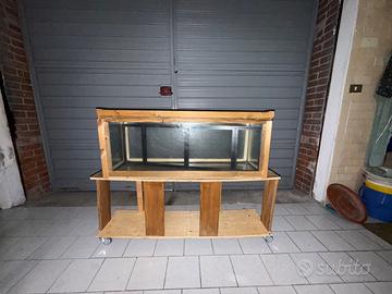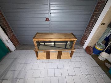 Acqua-Terrario realizzato in vetro e legno, completo di mobile con ruote il quale permette di alloggiare un altro habitat al piano inferiore.
