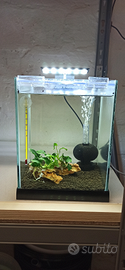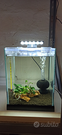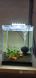 Acquario 12 Litri 20x20x25 di altezza. Perfetto per caridine e pesci tropicali. L'acquario e' come nuovo con filtro e plafoniera.