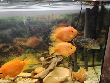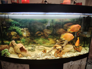 Vendo con pesci completo di molti accessori due filtri tutto quanto...vendo perché non ho più tempo di stargli dietro prezzo trattabile vendo anche i pesci separatamente
