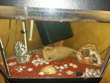 Vendo a causa dell'inutilizzo, acquario ad angolo di acqua dolce, compreso di accessori interni e mobiletto. L'acquario ha una capienza di 65 litri.