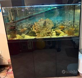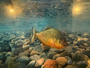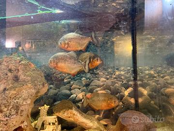 Acquario arredato, completo più pompa più 4 piranas da 20/25 cm