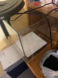 Acquario Newa L 31 x H 30 compreso di allestimento e mangime. Accensione con luce led, timer per accensione automatica da impostare con bottoni touch