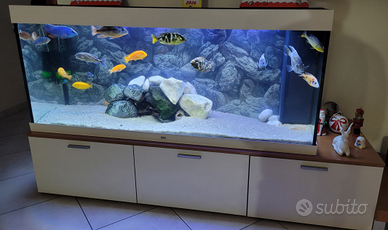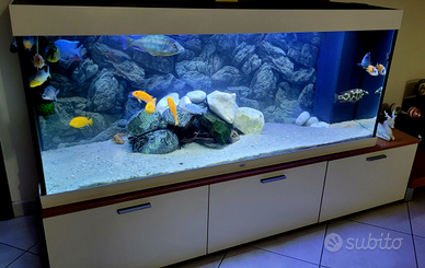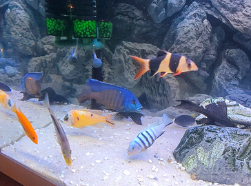 Acquario ciclidi malawi completo di mobile come da foto e ancora popolato da pesci: