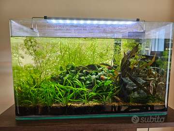 Vendo acquario d'acqua dolce da 42 litri lordi (circa 38 litri netti), avviato da circa 1 anno, completo di illuminazione, mobile, piante, fauna e moltissimi accessori.