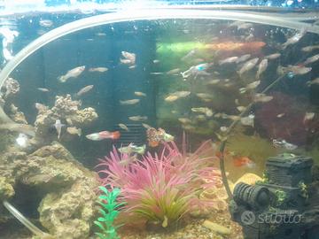 Salve come da titolo cedo il mio acquario di 80 litri completo di tavolino ,filtro e motore, accessori come in foto ,pompa aria x ossigeno, arredamento, LED, e in più ci sono circa 140 pesci guppy avanotti e adulti ,x ki fosse davvero ma davvero interessato all'acquisto non esiti a chiamare o scrivere su whatsapp, prezzo iniziale 150euro pochissimo trattabile.