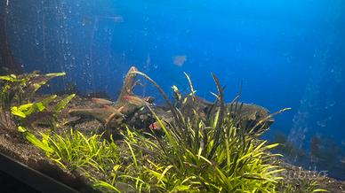 I pesci sono un grande pulitore e 4 da gruppo molto carino. L'acquario è d'acqua dolce.