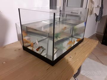 Misure 40 x 25 x 25 cm. Ho tutti gli accessori, cibo , filtri, piante finte, rocce, barca ecc.