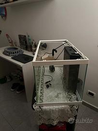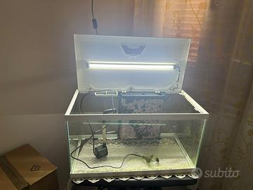 Vendo acquario in perfette condizioni misure lunghezza 60 altezza e larghezza 30 vendo con vano filtro più pompa vasca perfetta completa di lampada acquario usato pochi mesi