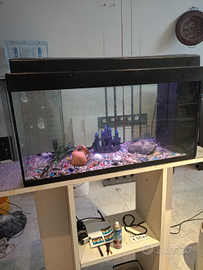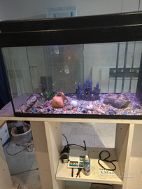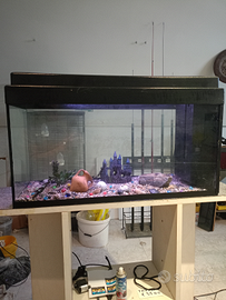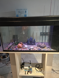 Cedo acquario in ottime condizioni, le misure sono avanti cm 80, profondo cm 30, altezza cm 50. È completo di filtro con relativi materiali filtranti e pompa di ricircolo, luce funzionante, sabbietta e arredamento come da foto. Lo vendo a euro 70. Per chi è interessato può chiamare questo numero 3387457294