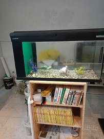 Cedo acquario in ottime condizioni, le misure sono avanti cm 80, profondo cm 30, altezza cm 45. È completo di filtro con relativi materiali filtranti e pompa di ricircolo, luce funzionante, sabbietta e arredamento come da foto. Lo cedo a euro 70. Per chi è interessato può chiamare questo numero 3387457294