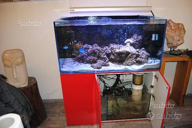 Vendo Acquario Marino completo di mobile fatto su misura laccato rosso e perfettamente funzionante.