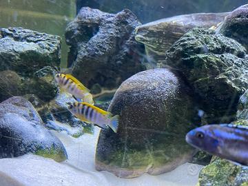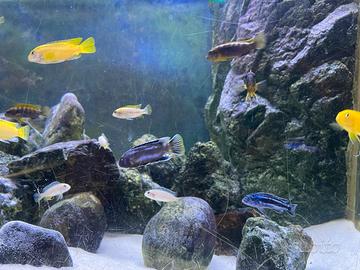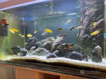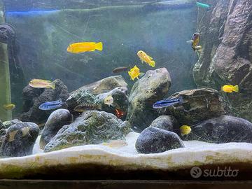 Vendo acquario con una ventina di Ciclidi africani del Malawi mis. 100x60x60 con supporto
