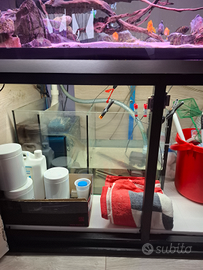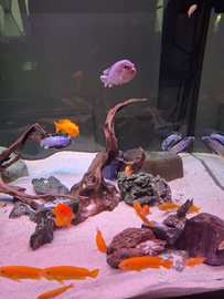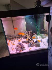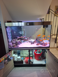 Vendo acquario extra chiaro 12 mm, misura 115x70x70 completo di supporto impianto illuminazione a led con alba e tramonto marchio sera + samp + pompa di risalita + riscaldatore 300w, con pesci, ciclidi africani, pulitori sterbay ancistrus e loricaridi, nel prezzo tanti accessori. Accetto anche proposte di scambio (come canarini cardellini ecc.....