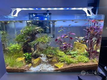 È completo di filtro a zainetto AQPET e Lampada apposita per la crescita delle piante.