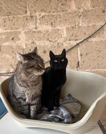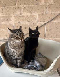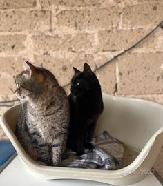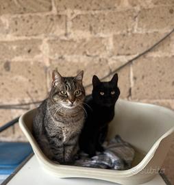 Adozione gatte adulte - Nala e Bastet Cerchiamo adozione responsabile per due gatte di circa 5 anni: Nala (tigrata) e Bastet (nera). Sono molto buone, coccolone e socievoli con altri gatti. Inizialmente timide con le persone che non conoscono, ma con un po' di pazienza diventano molto affettuose. Non sono abituate ai cani. Sono sterilizzate, vaccinate, FIV/FELV negative e trattate regolarmente con antiparassitario. Cerchiamo adozione in appartamento con finestre protette da zanzariere e balconi/spazi esterni messi in sicurezza con reti. Mettiamo annuncio su Milano sperando in persone di buon cuore al nord perché qui fanno tutti pietà con gli animali... Si trovano a Benevento, ma possono viaggiare verso centro e nord Italia con treno Frecciarossa per buona adozione. Adottabili insieme o anche singolarmente. Situazione urgente: non possono continuare a vivere chiuse in una stanza. Info: 347 772 7492 - Marta (solo WhatsApp, no chiamate).