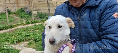 Lui è White, simpatico e dolcissimo simil maremmano/Golden di 1 anno di 22 kg circa che proviene da una masseria dove ci sono svariati tipi di animali, adora il contatto con gli umani e sa essere dolce ma allo stesso tempo con una famiglia dinamica può essere un degno compagno di camminate .. interagisce molto bene con il resto del mondo ? ed è pacato nel relazionarsi, direi il classico pantofolone.. insomma, ha le carte in regola x avere finalmente una famiglia che lo consideri parte integrante e gli regali anche lunghe dormite su un bel cuscinone ?