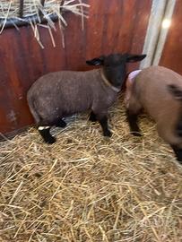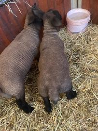 Due agnelli suffolk di 45 giorni genitori in purezza visibili . Per la ricerca agnelli pecore montone