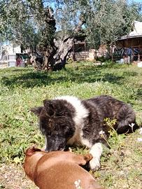 Akita inu di 9 mesi, femmina con pedigree; si cede con trattamento antiparassitario, 1 vaccino e sverminazioni effettuate. Sana, si cede come cane da compagnia e/o fattrice.