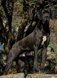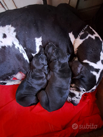 Cuccioli di alano nero, maschio e femmina, di 70 giorni. Cedo con trattamento sanitario, ciclo vaccinale, visite veterinarie, microchip e pedigree con linea di sangue di campioni nazionali e internazionali. Iscritti all'anagrafe canina della regione. Genitori visibili.