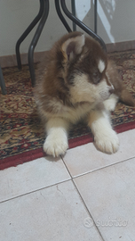Maschio attualmente 10 mesi alaskan malamute rosso fegato struttura robusta linea snow lion. Carattere socievole. Ottimo futuro stallone. Foto e video in privato.