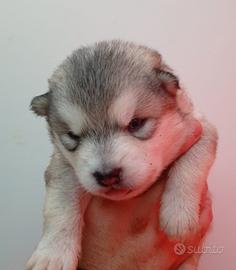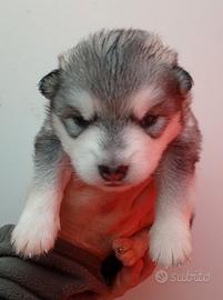 Cuccioli Alaskan Malamute nati il 13 dicembre 1 maschio Seal ( nero) come il padre,1 maschio grigio e 2 femmine grigie verranno ceduti dai primi di marzo con pedigree, microchip, iscrizione anagrafe canina,un vaccino, libretto sanitario,puppy kit primo periodo e assistenza post vendita.genitori esenti malattie ereditarie.