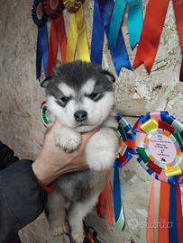Disponibili 2 cuccioli di Alaskan Malamute nati il 13 dicembre ( da allevamento) 1 maschio grigio e 1 femmina grigia,genitori esenti displasia anche e gomito,esenti oculopatie ereditarie, saranno ceduti a partire da fine febbraio con libretto sanitario ,vaccino, iscrizione anagrafe canina, microchip, sverminazioni effettuate,pedigree,linea di sangue da show ma adatti anche a sport e compagnia genitori visibili di proprietà.sono aperte le prenotazioni