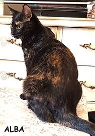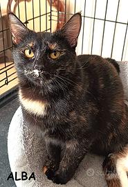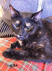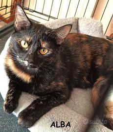 Io sono Alba, una bellissima micia squamina scura di 8 mesi, la mia e' una storia semplice, io e i mei fratellini siamo stati trovati in un secchio, tutti insieme raggomitolati per scaldarci... qualcuno ci ha messi li' dentro dopo che la nostra mamma a un certo punto non e' piu' tornata. Grazie ad un anima gentile siamo stati recuperati e allevati con cure e amore, ma siamo diventati adottabili in estate e purtroppo non abbiamo avuto richieste... poi quando e' tornato il tempo ... i miei fratellini e sorelline dai manti rossi sono andati tutti a casa... io che sono meno "appariscente" sono ancora qui... ma sono particolarmente dolce e sensibile, abituata alla casa, all'essere umano e ai miei simili.